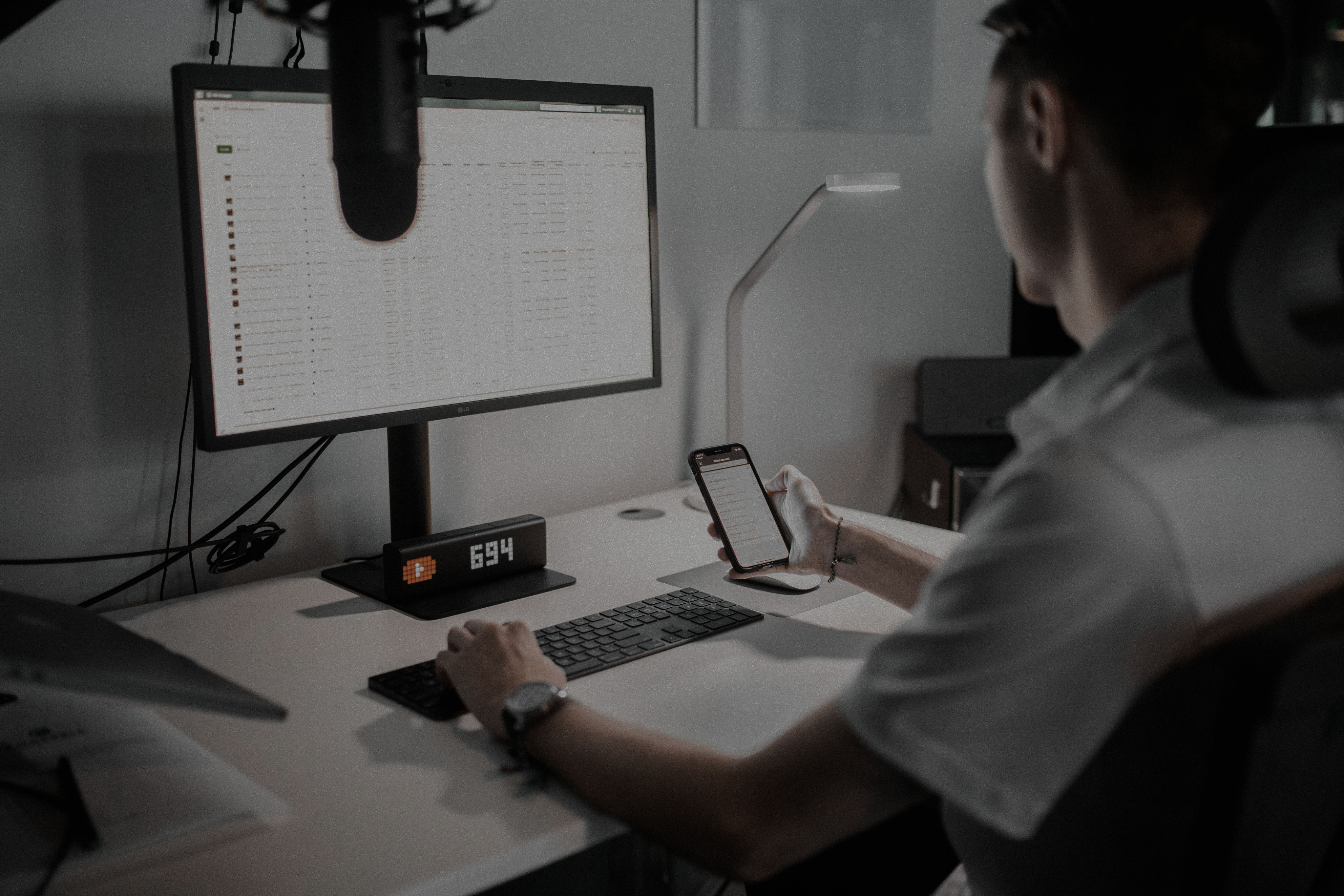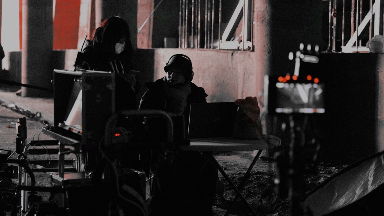Dynamic film set, serious team work, technologic image.